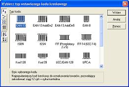 Program pozwala umieścić na etykiecie kody kreskowe w praktycznie wszystkich, najbardziej popularnych na rynku formatach. Są to wymienione poniżej rodzaje kodów: