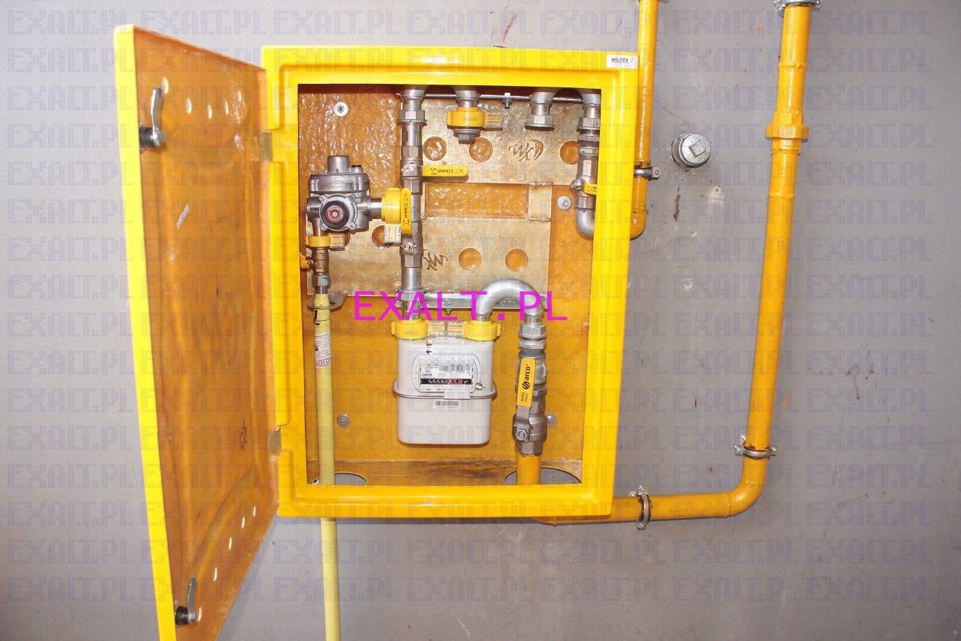 skrzynka gazowa podwójna z armaturą, wymiary 600x800x250, kompletna armatura, uchwyty na gazomierze, łącznik na reduktor |