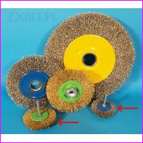 Szczotka tarczowa TT07 karbowana z trzpieniem, średnica szczotki fi 100 mm, trzpień fi 6 mm, wykonana z drutu mosiężnego